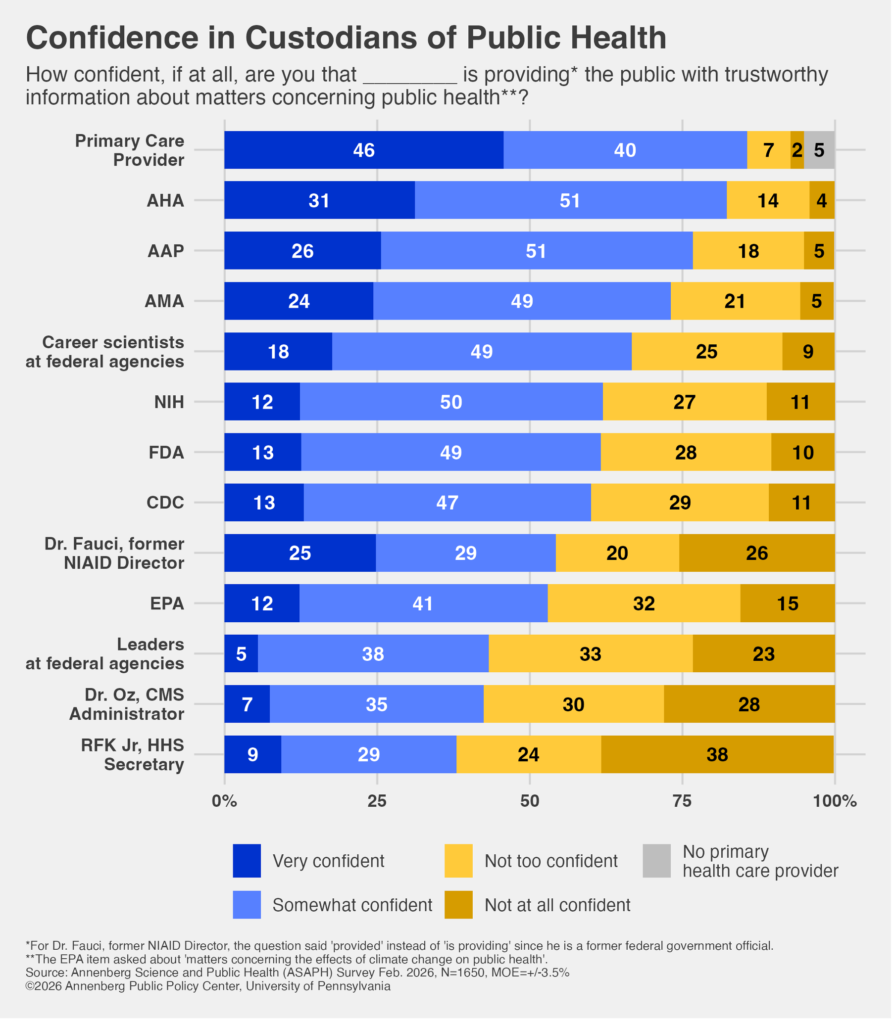 “The public is differentiating the trustworthiness of career scientists in the CDC, NIH, and FDA from that of the leaders of those agencies and recalling substantially higher confidence in the guidance that former director Fauci provided than that offered by Secretary Kennedy or Dr. Oz,” Ken Winneg, APPC’s managing director of survey research, said in a statement.