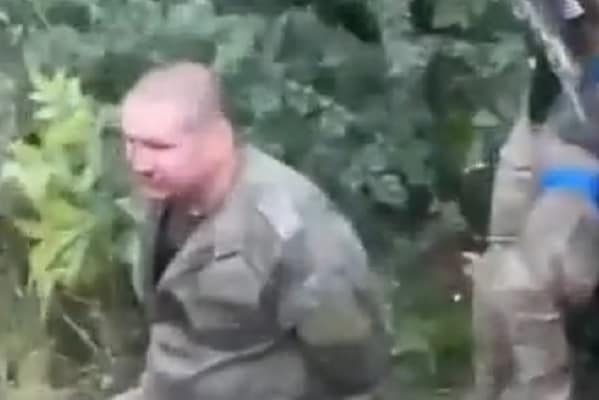 During the Ukraine’s counteroffensive on the Kharkiv front the General was captured with other soldiers who are on their knees handcuffed and being asked questions, images show.
