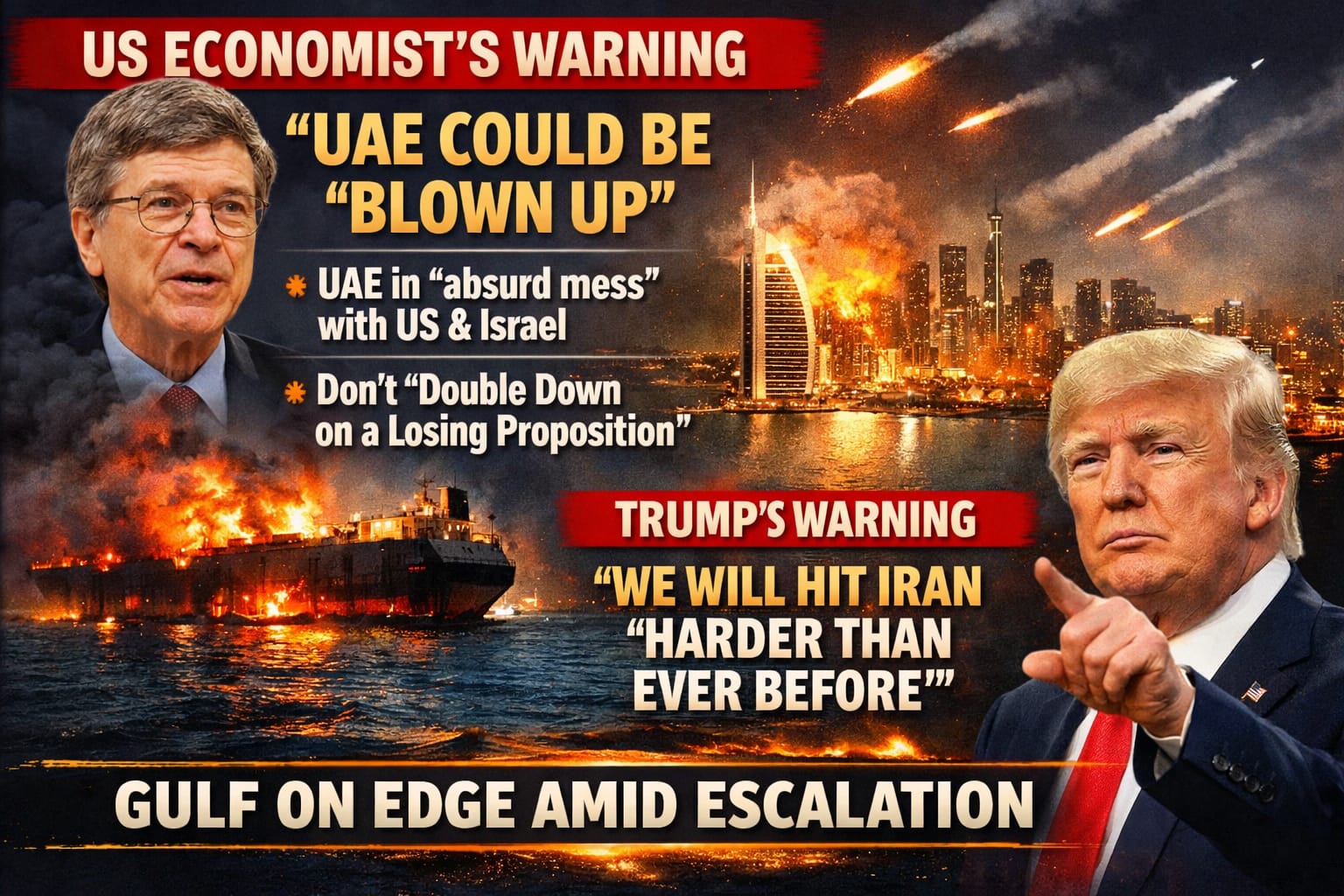Jeffrey Sachs described the UAE’s current position as an “absurd mess,” criticising its alignment with the United States and Israel. He advised the nation against “doubling down on a losing proposition,”  as “Abu Dhabi and Dubai could be blown up,” he told ANI.